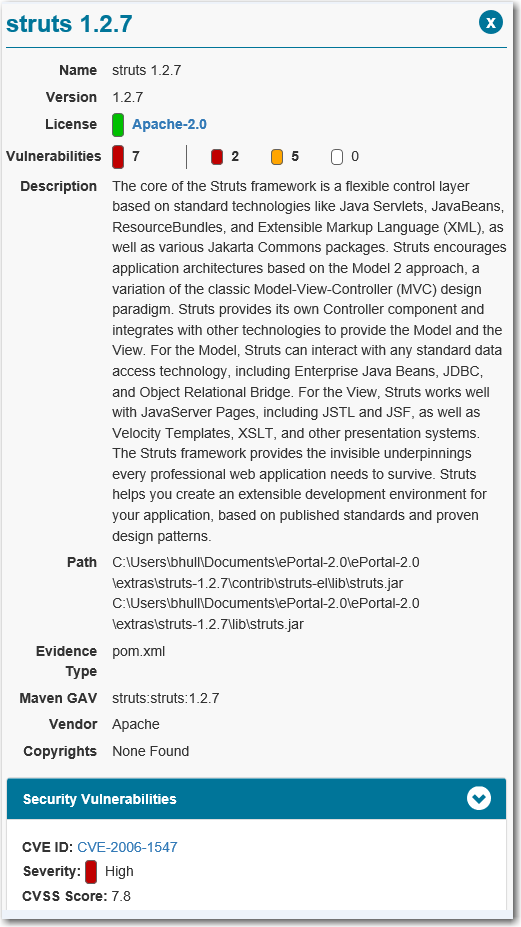 Security vulnerabilities are looked up against the National Vulnerability Database (NVD).