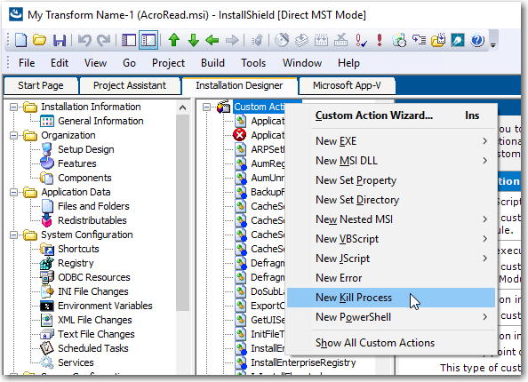 | • | Add Kill Process and PowerShell Custom Actions to a Transform Project |